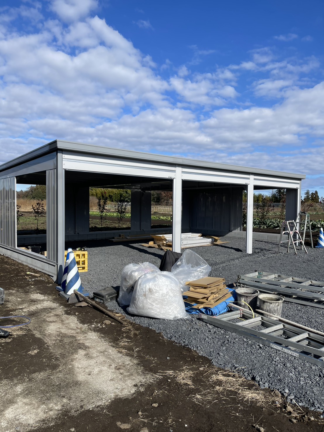 イナバガレージ3台用の組み立て設置作業となります。