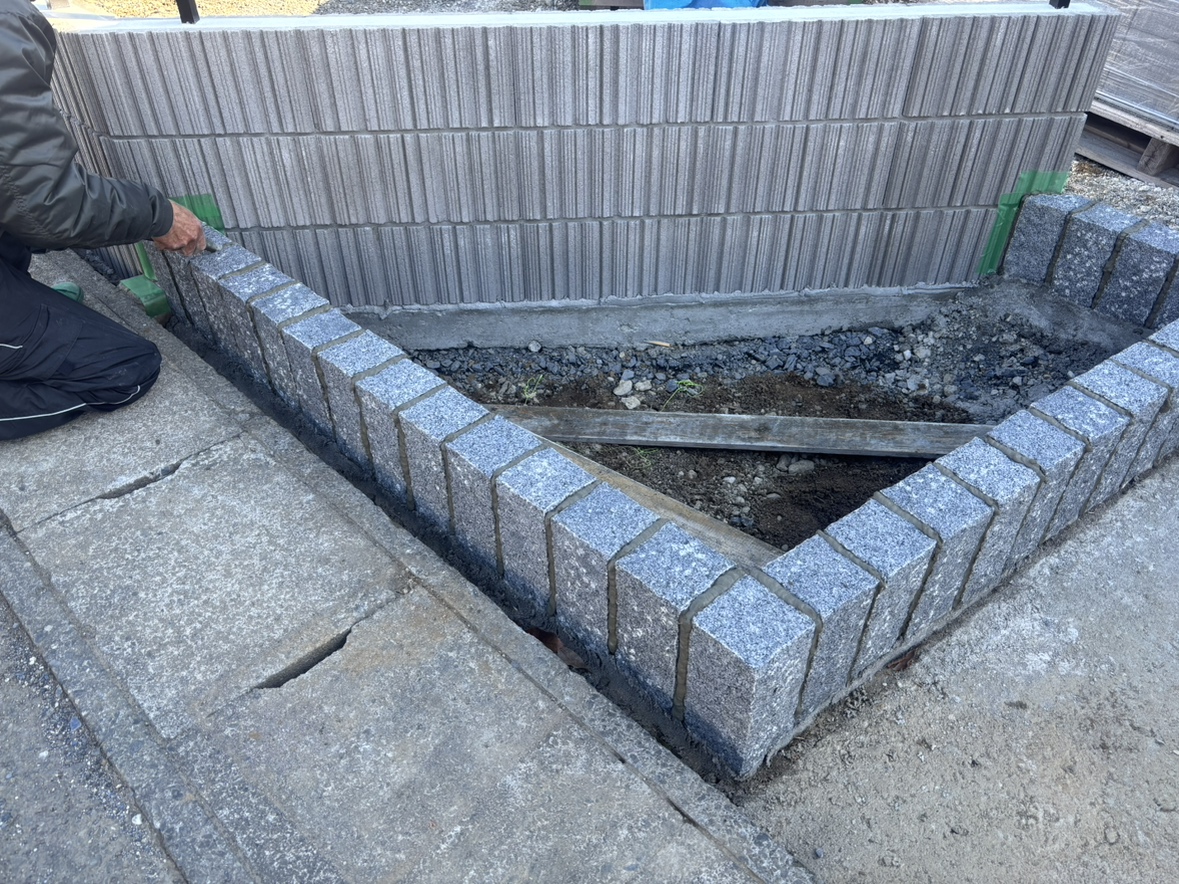 花壇部分のグラニートの目地入れの作業となります。寒さで目地材が少し固くなっていますが、これから気温が上がり暖かくなって来て作業もしやすくなって参ります。 外構ING 2026.01.06(最終更新 2026.01.06)