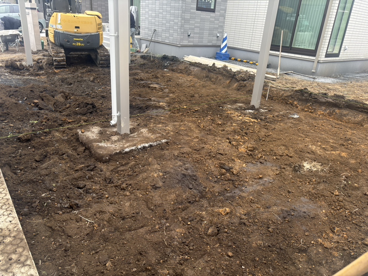 本日より工事着工となります。駐車場部分の掘削作業より工事開始です。