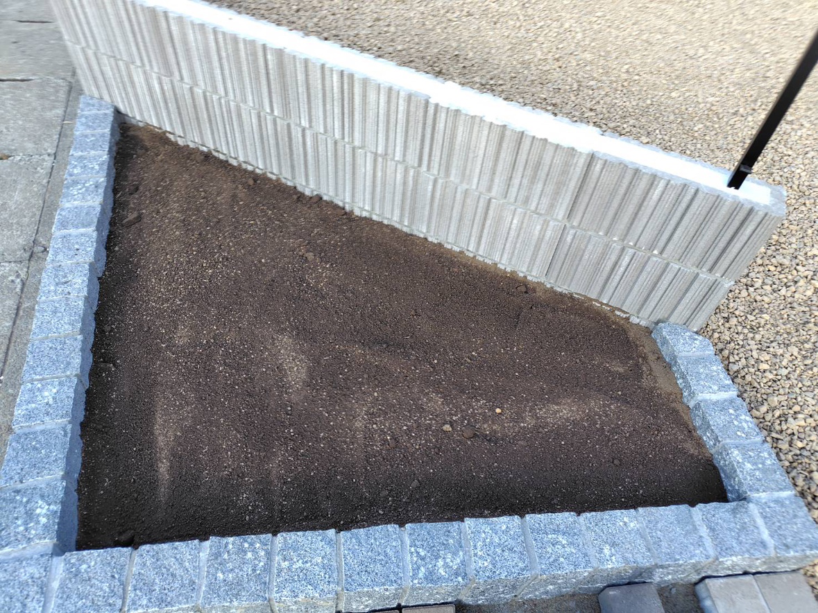 入り口グラニートの花壇部分への黒土入れ作業となります。 | ホームエクステリア『アサヤマ』