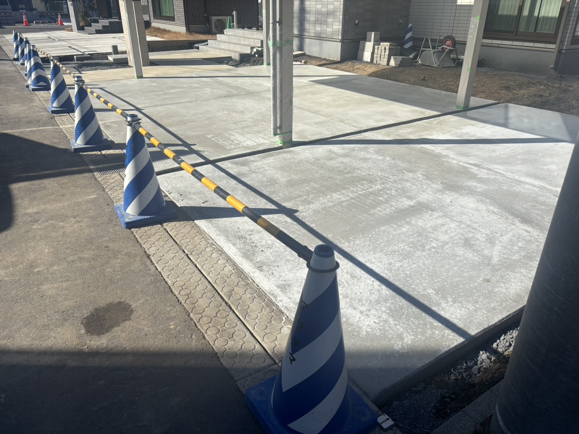 本日はイナバの物置きの材料搬入後に下地の防草シート・6号砕石を敷いて物置きの組み立て作業開始です。