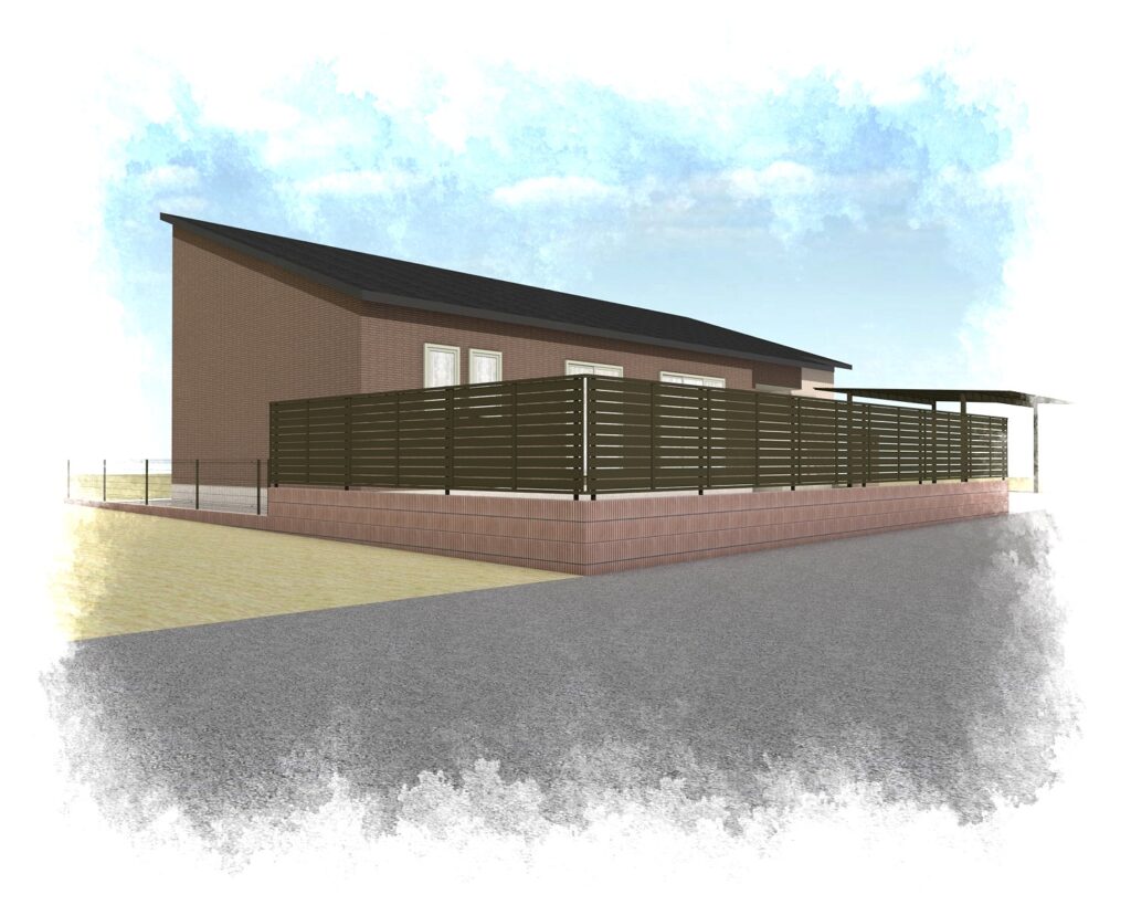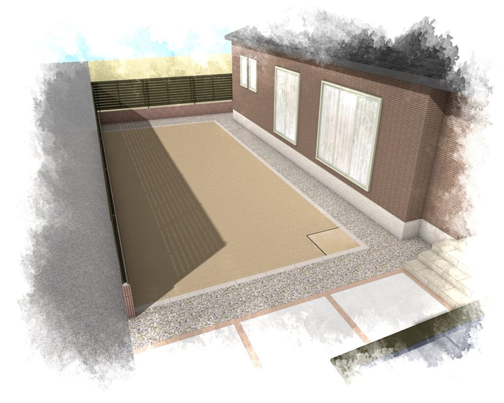 お庭は人工芝スペースを設け、目隠しを施工します。