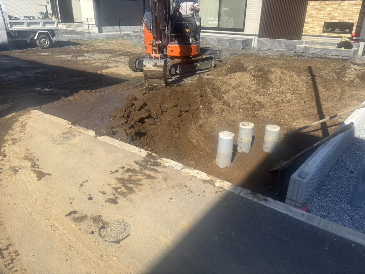 工事着工前のご近隣へのご挨拶にお伺いさせて頂きました。お待たせ致しました外構工事着工となります。