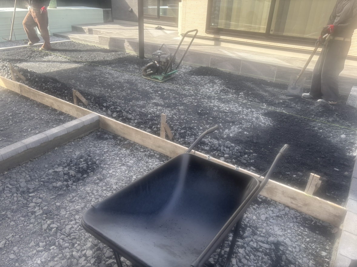 砕石の下地均し作業となります。