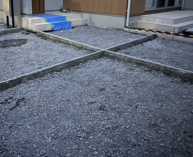本日は工事着工前のご近隣へのご挨拶にお伺いさせていただきました。お待たせ致しました。外構工事着工です。
