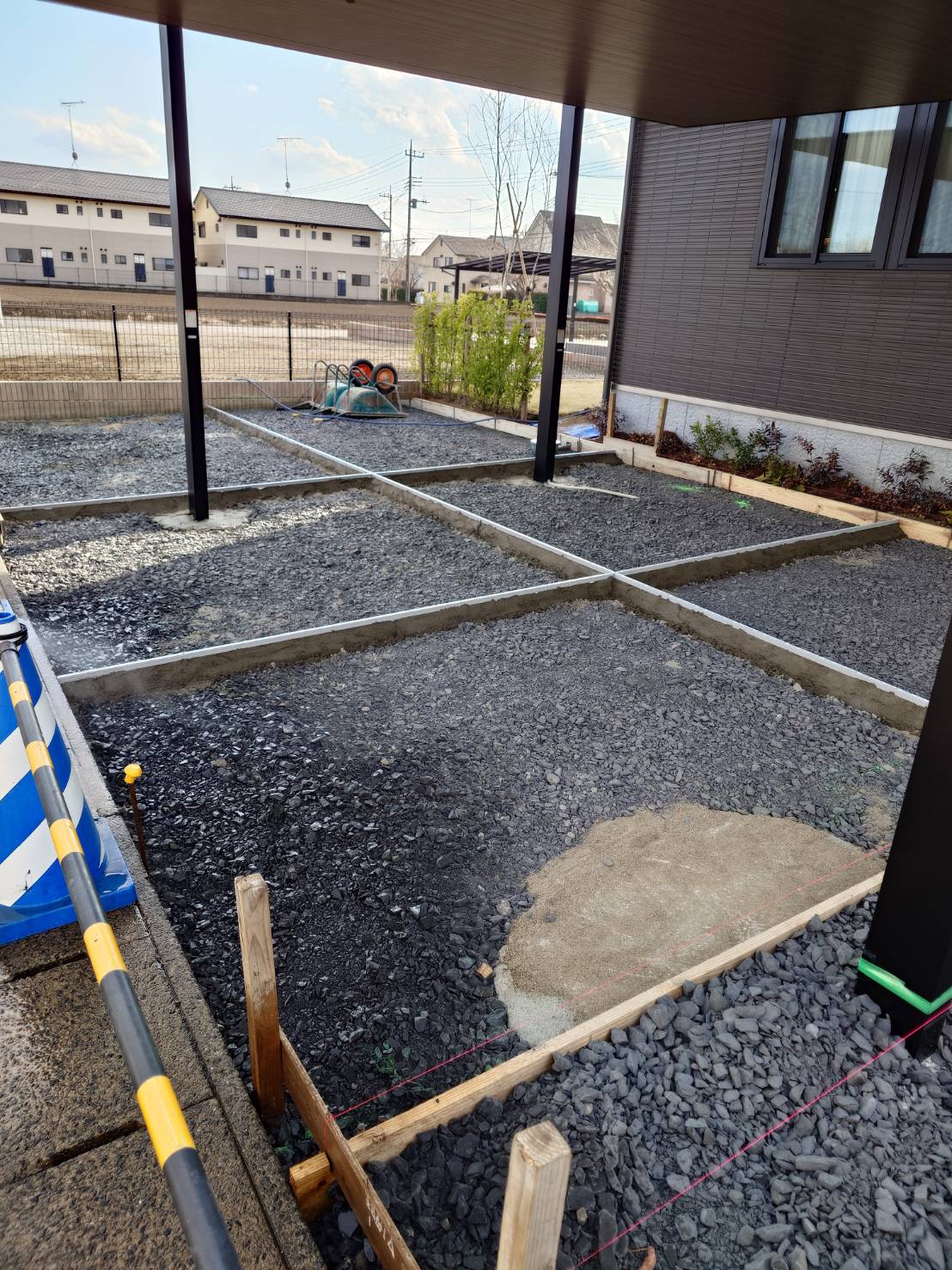カーポート駐車場部分の見切りエキスパンタイの設置となります。