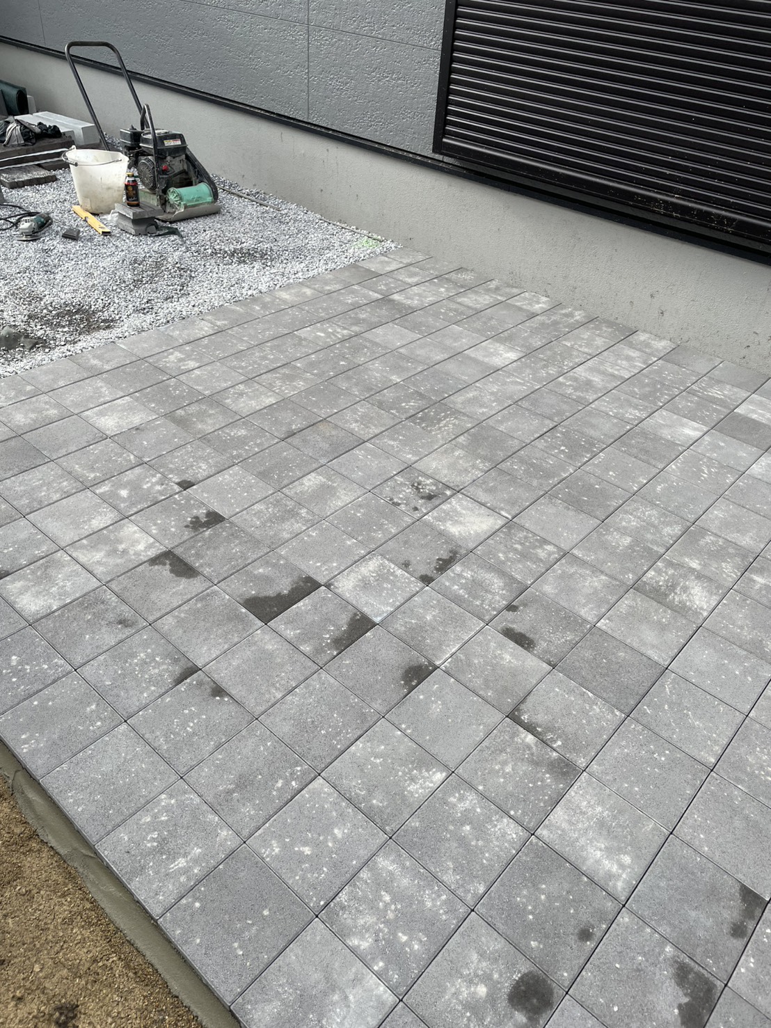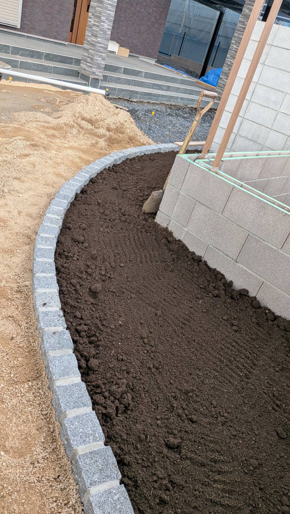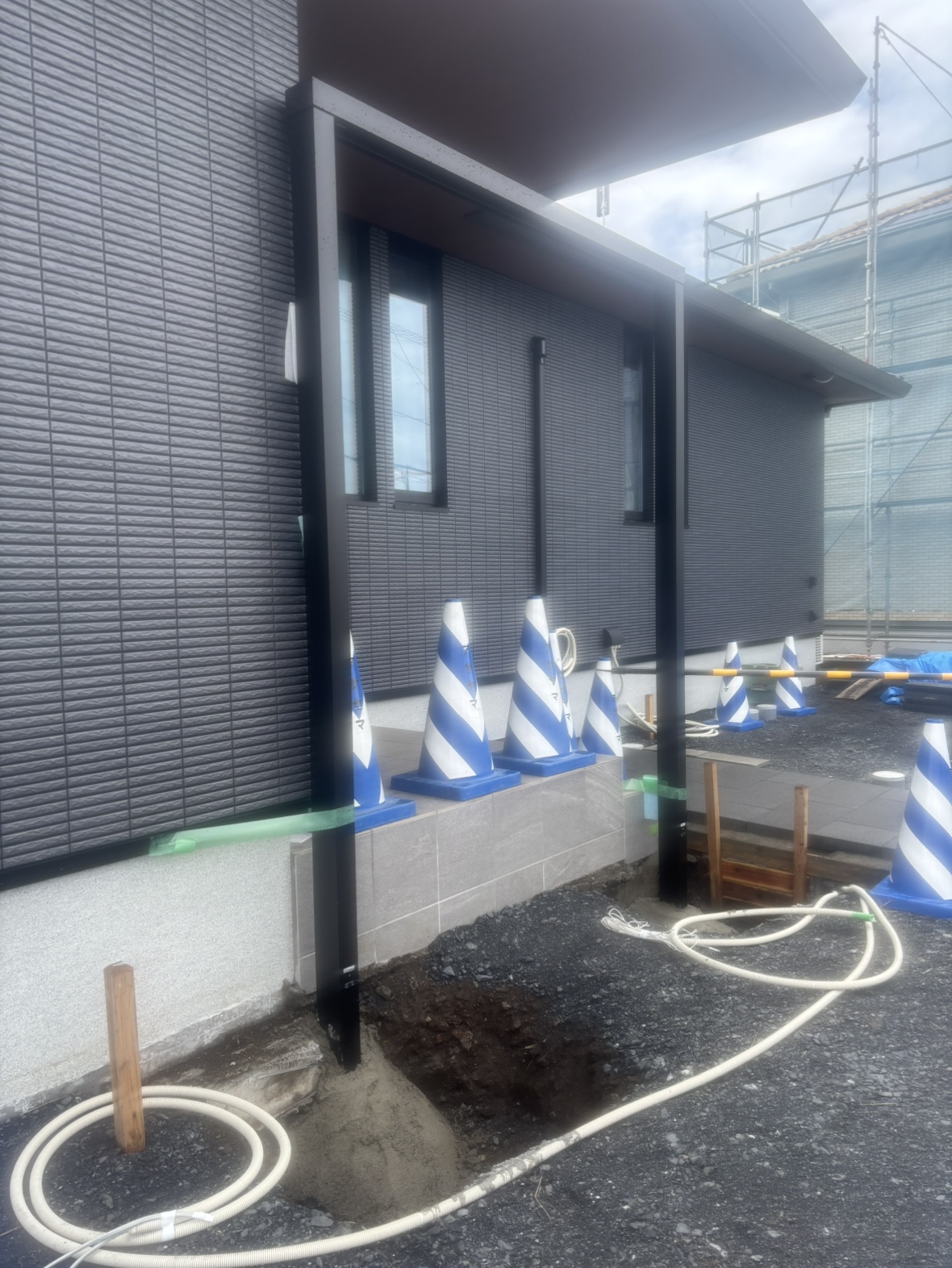 新築の外構工事をご依頼をいただきました。 お庭にはLIXILプラスGを使用しプライベートな空間になります。 植栽や割石で室内からの景色も楽しめます。 工事着工です。よろしくお願いいたします。