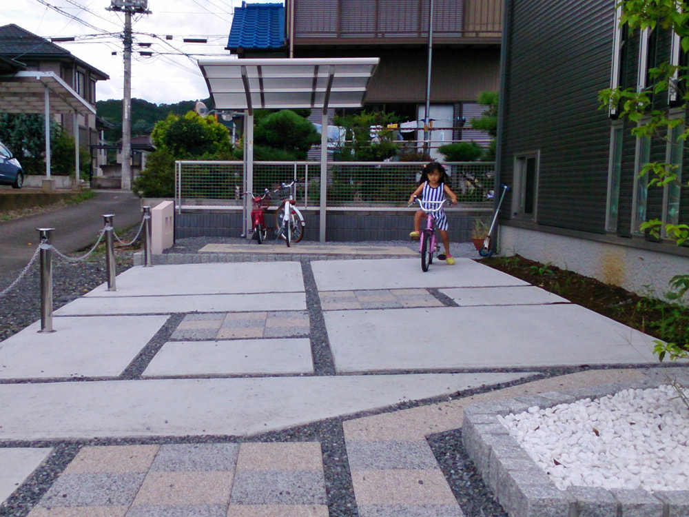コンクリートの駐車場になって、お庭と駐車場の仕切り壁も良く、全体的にすっきりとまとまって満足です。