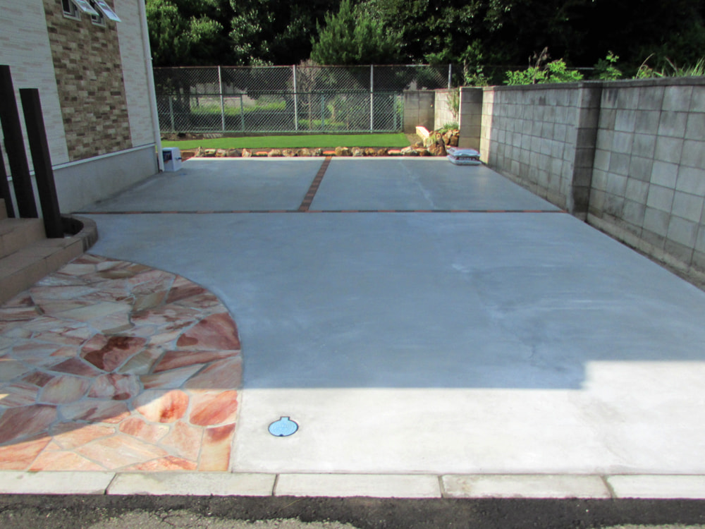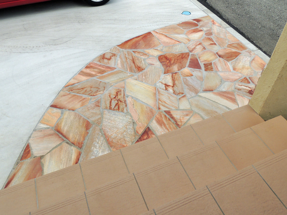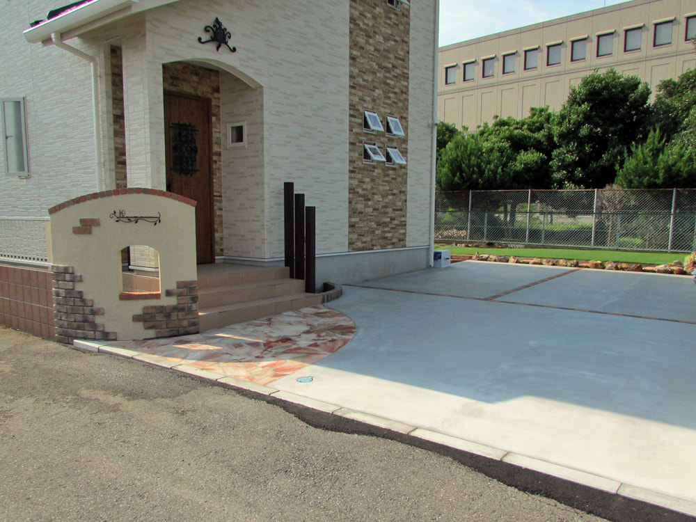 出来るだけ南欧風に。アプローチに乱張りを入れたかったのと、柔らかい印象になる様に所々R状になるようにお願いしました。