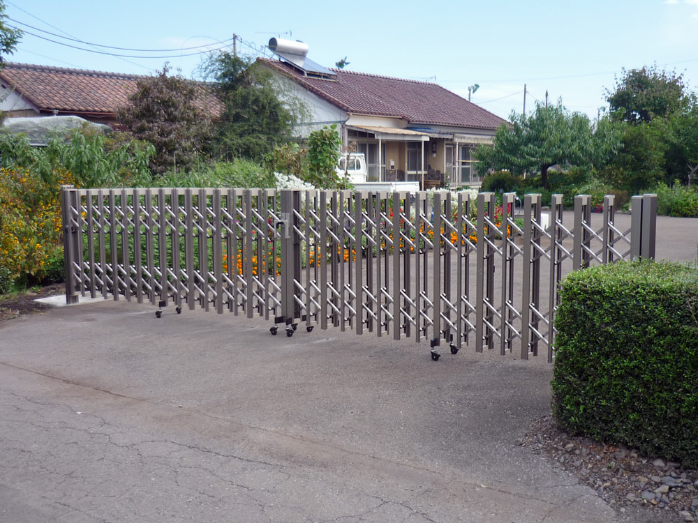 出入口を塞いで、他からの侵入をなくしたいというご要望がありましたので、伸縮ゲートをつけました。