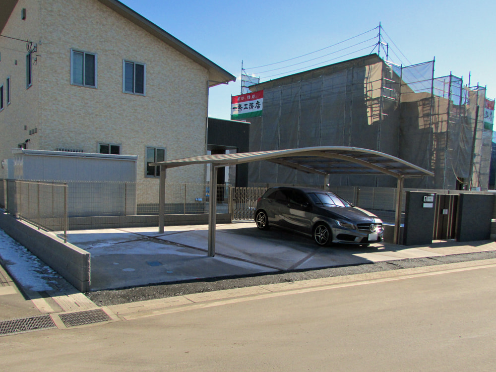 クローズ外構にして、駐車場は常時3台分のコンクリートと2台分のカーポートの工事を建物に合わせて全体をまとめてほしいとのご要望がありました。