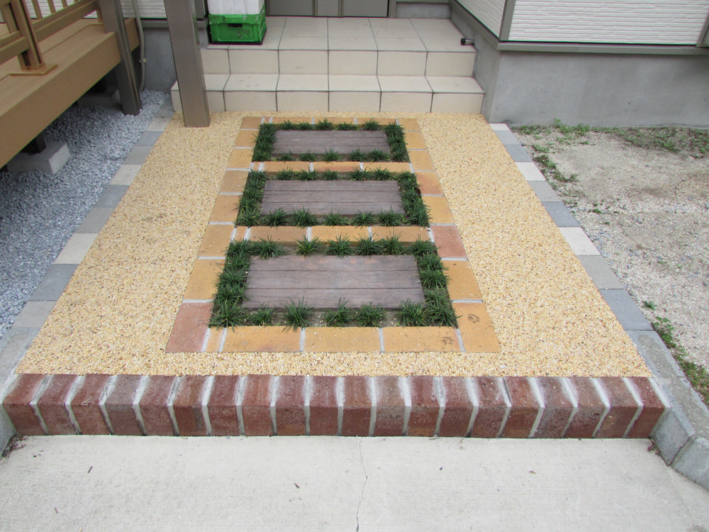 日除けのオーニングは喜んで頂きました。駐車場も道路脇はインター敷きにより私有地と道路を見分けることが出来ました。
