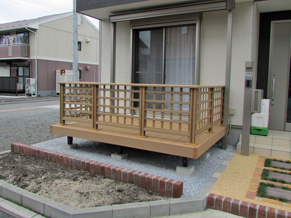 デッキの前に花壇をつくり、ゆっくりできるスペースを作りました。