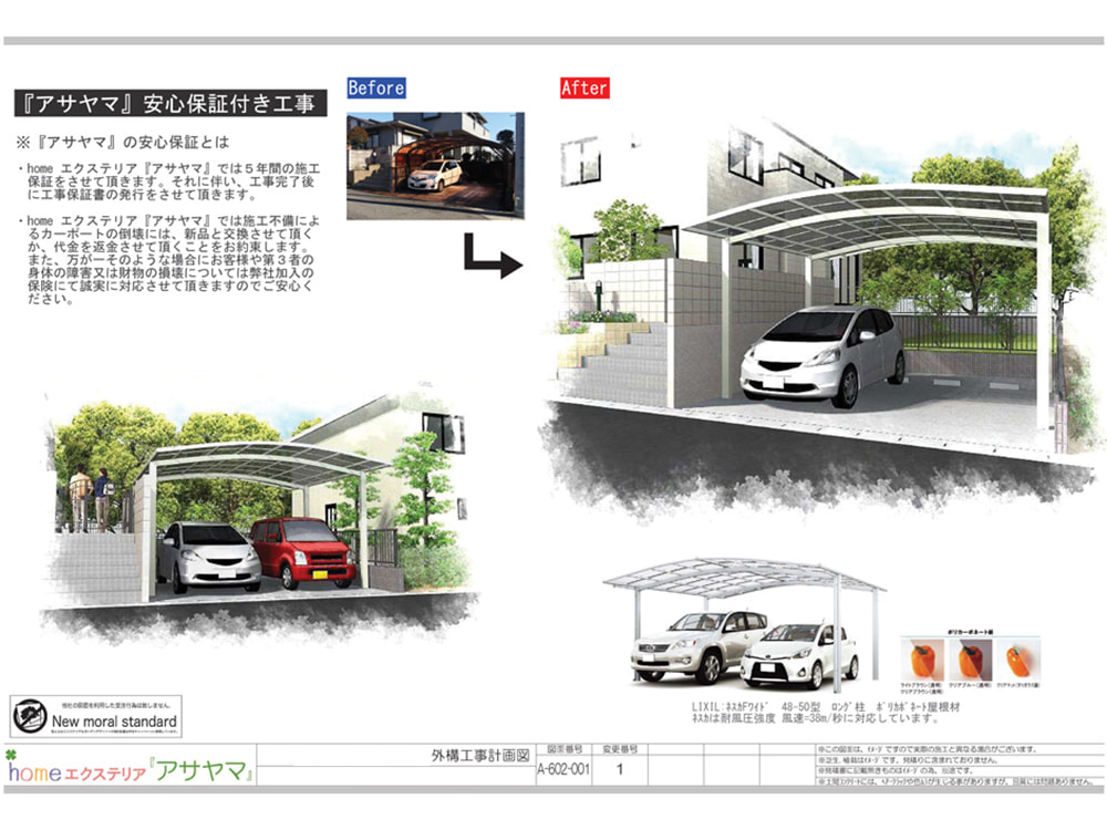 結果的には、改修も交換も金額がほとんどかわらず、交換の方が保証もつくのでカーポートは新しく入れ替えました。又、タイルは一段目を補修しました。