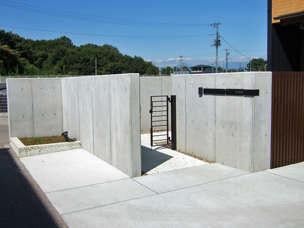 敷地が広く、アプローチや駐車場の配置を工夫しました。3台分の駐車場はゲートでふさぎ、その他道路側にゲートを開閉する時、仮駐車できるスペースを設けました。