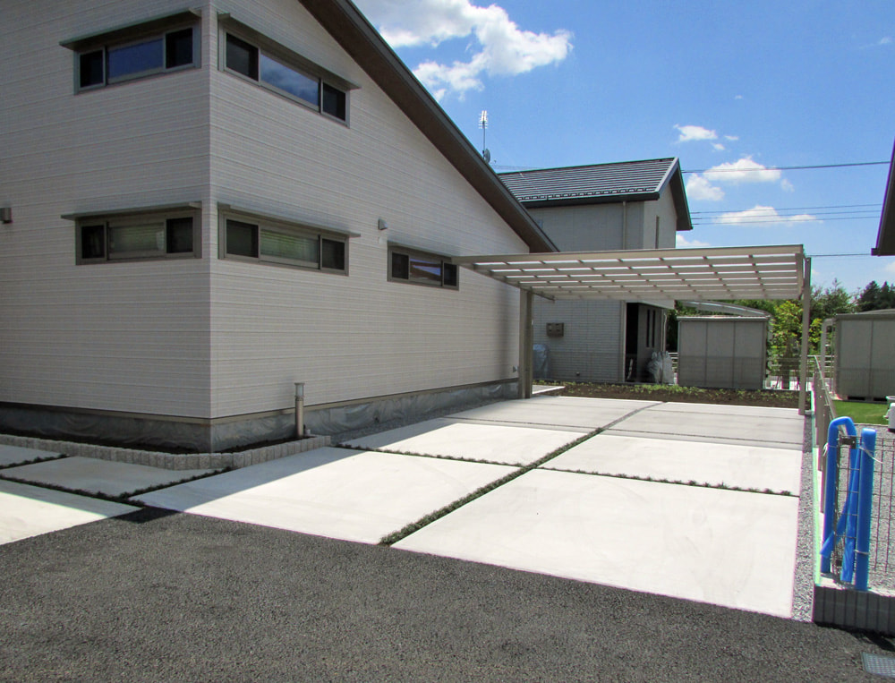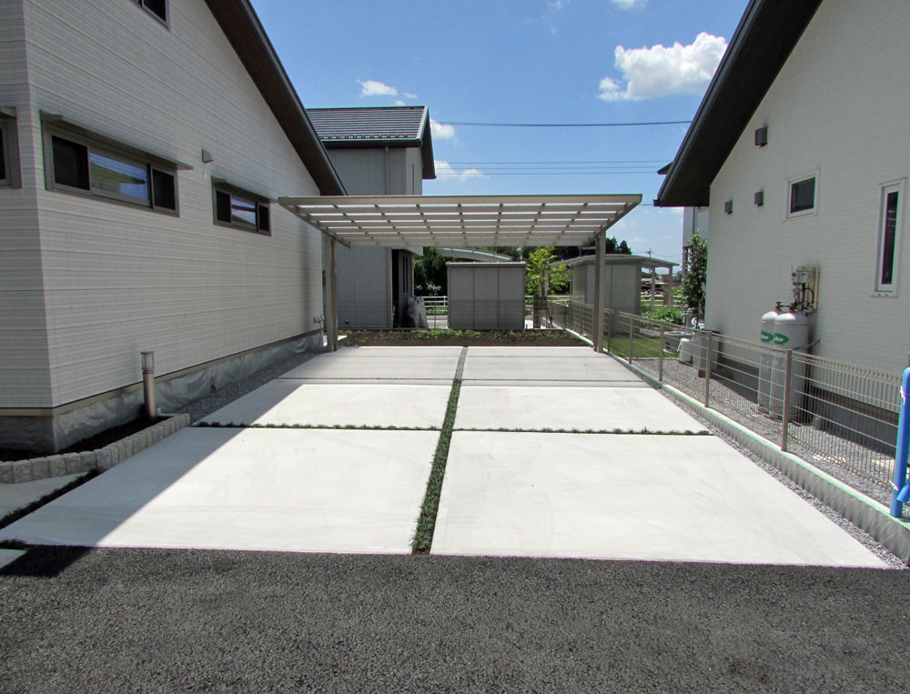 道路から駐車場に至るまでに、お隣との共通部分の道路があるので、プランの中の高さ、水勾配など苦労しましたが、満足して頂きうれしく思います。