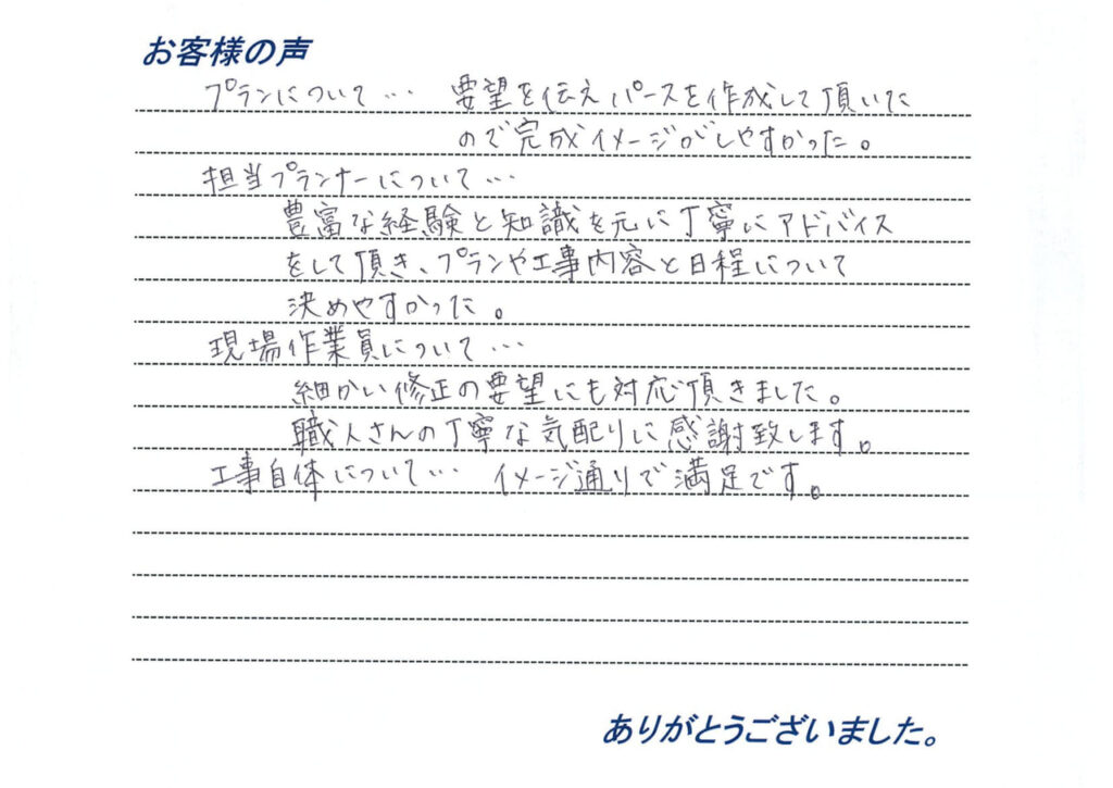 早めの工事をご希望で、無事に完了できてよかったです。