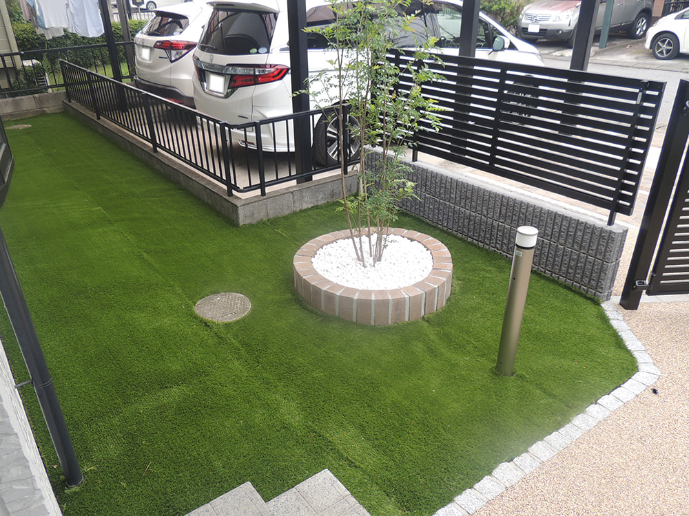 そこで、お手入れの少ない人工芝やアプローチ等をご提案し、お庭を大きく変えることなくより良い生活ができるようにご提案させていただきました。