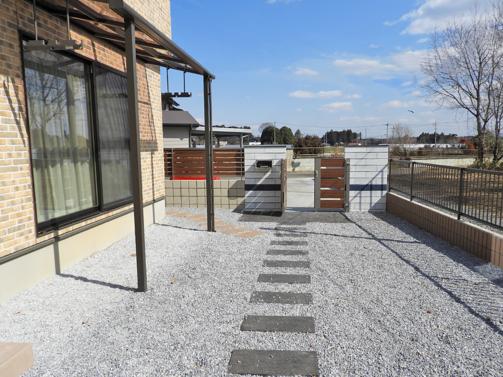 工事前は何もしていない状態でしたので、雨が降ると玄関や車が汚れ、また見た目も良くありませんでした。お隣さんとの境界もわかりずらかったのではっきりさせたいとお願いしました。