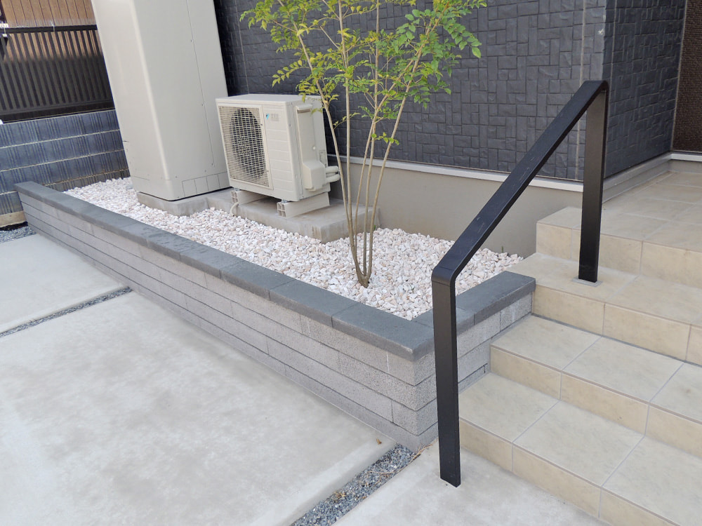 雑草のお手入れが大変とのお話をお伺いしておりましたので、なるべく土がないような外構をご提案しました。