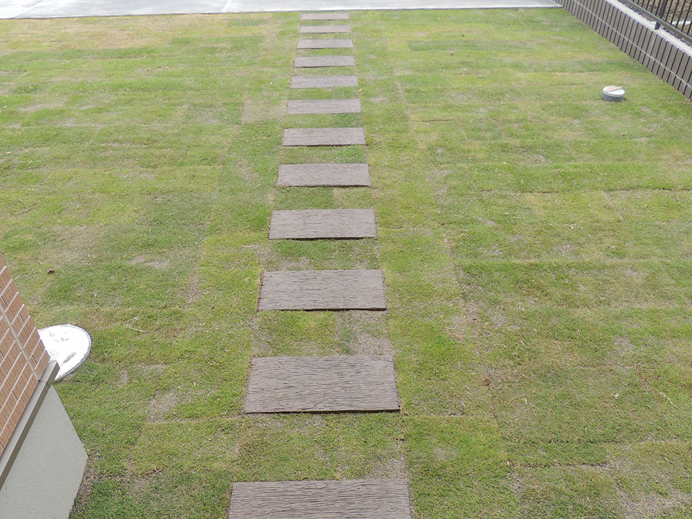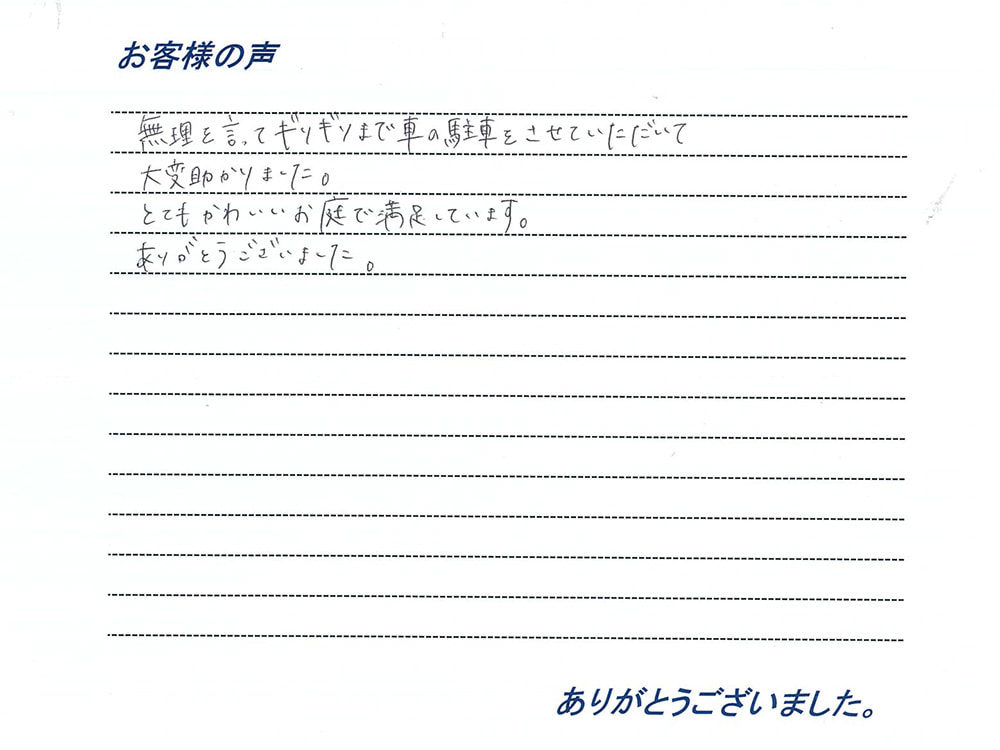 駐車場と芝生、アプローチとお隣との境界をご希望されておりました。