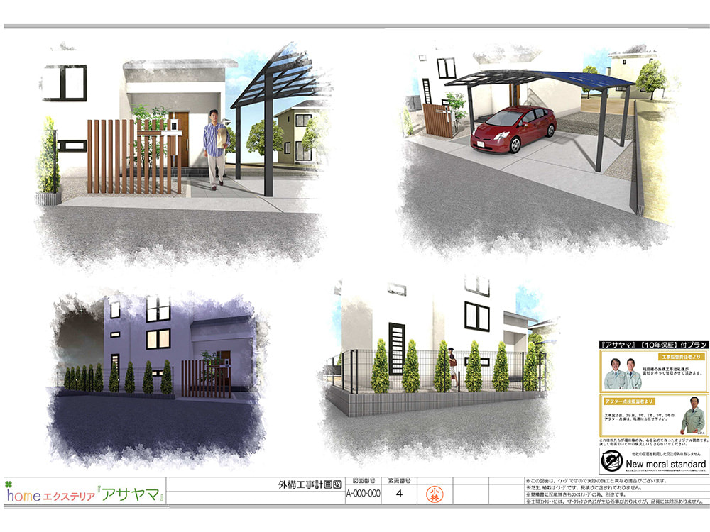 玄関とお隣との視線が気になる場所との目隠しと、駐車場・カーポートをお願いしました。