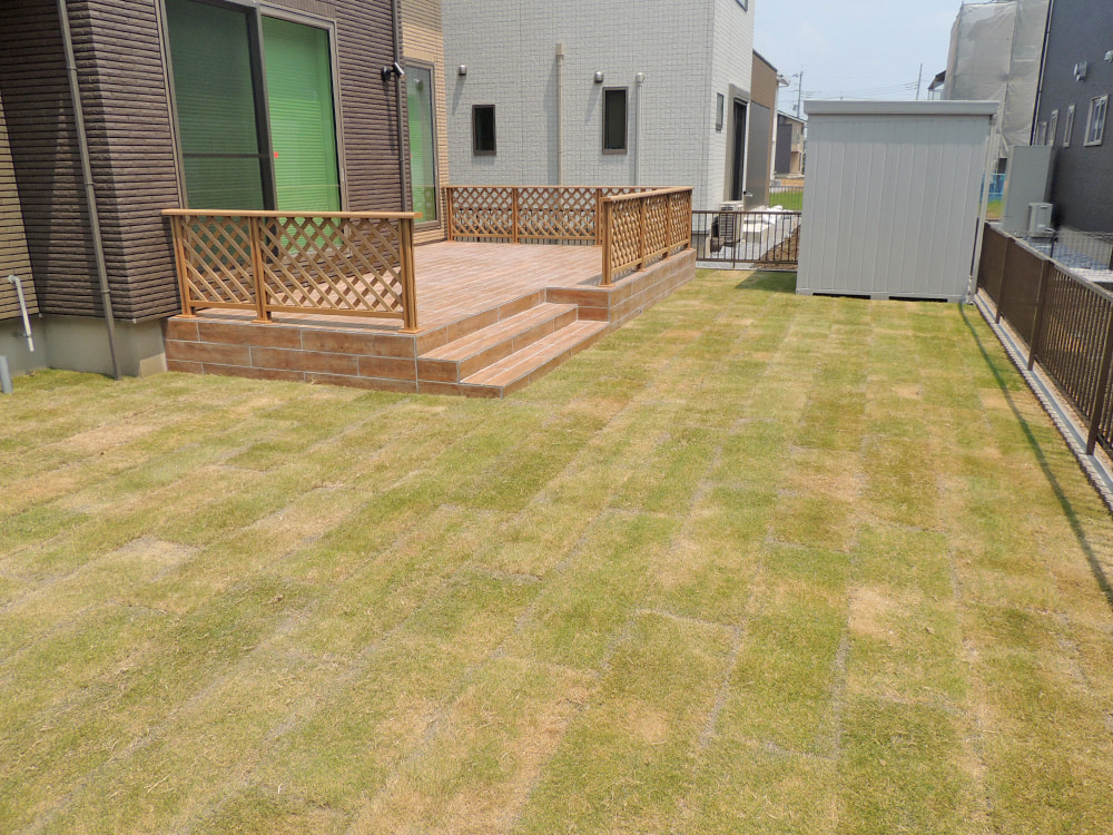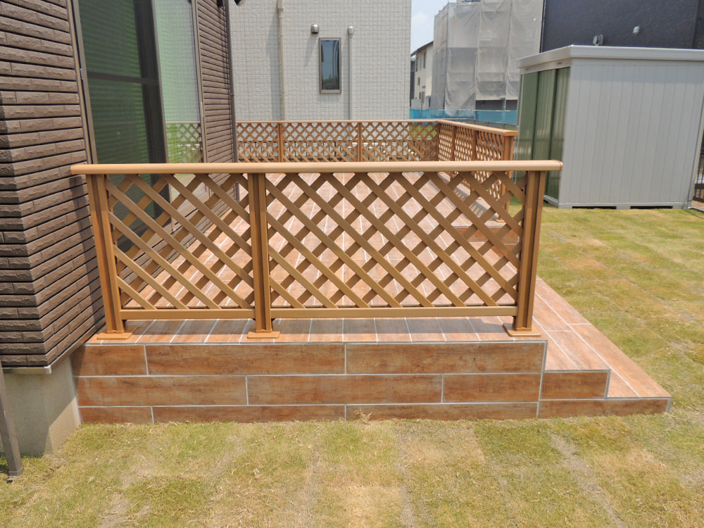 奥様がお気に入りの木彫のタイルデッキは、お庭の芝生と調和がとれてとても素敵に仕上がったと思います。ご家族で楽しい時間をたくさん過ごしてください。また、お手伝いができることがありましたらお気軽にご連絡ください。