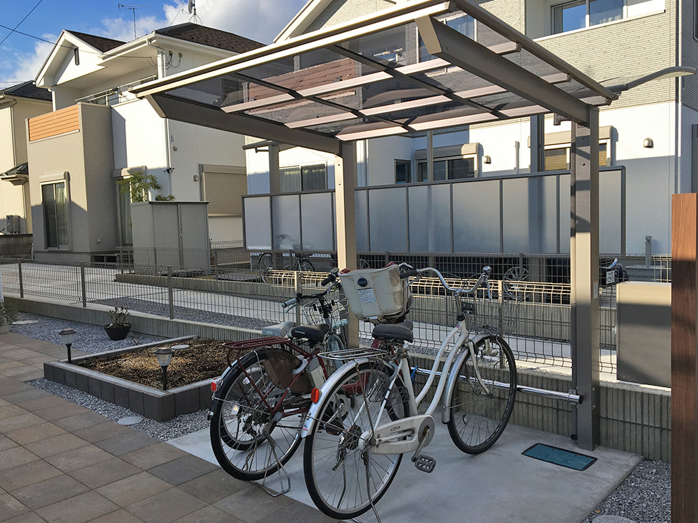 枕木は木の温もりを持たせつつ、駐輪場への防犯対策も兼ねています。
