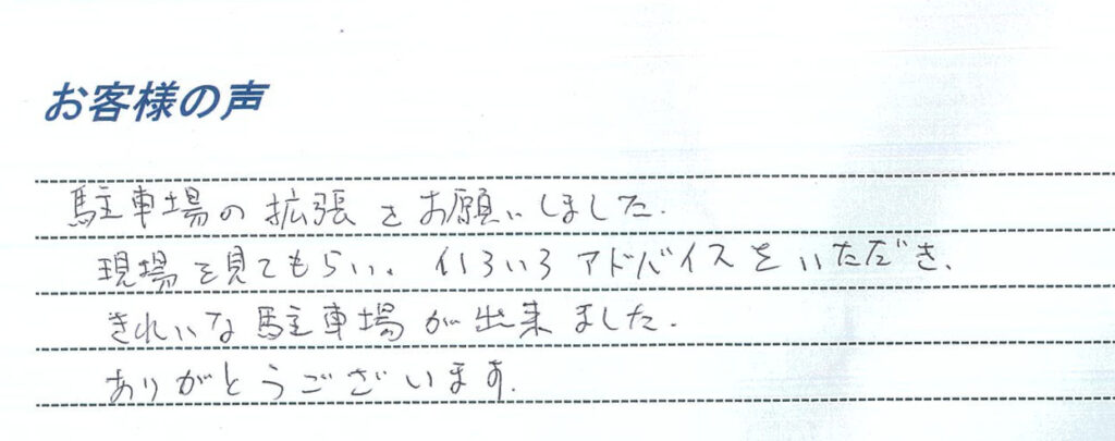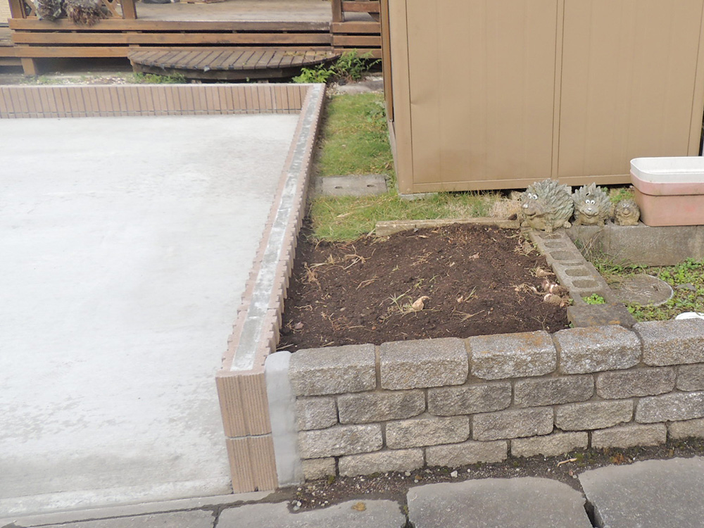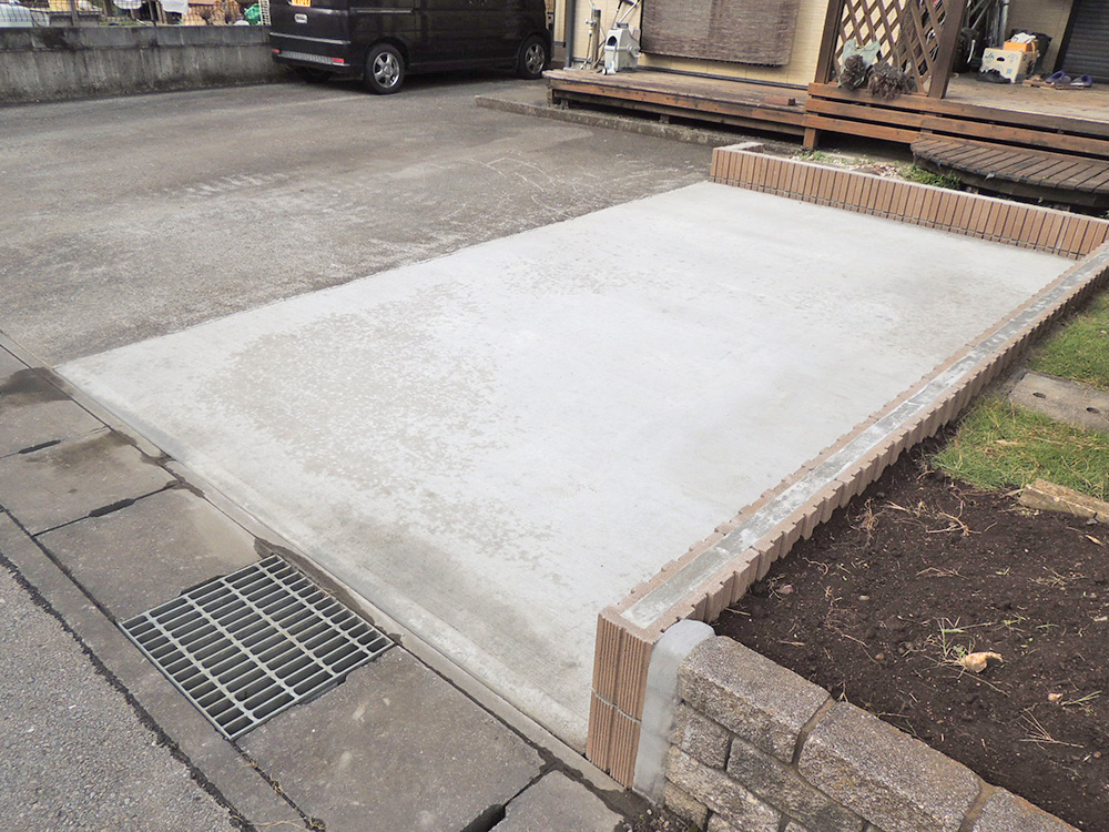 お子様が車に乗ることになったため、駐車場を広くしたいとの事で、ご相談を受けました。既存の土留めブロックと、ヤマボウシの木を撤去し、コンクリートの駐車場を増設致しました。完成後は嬉しいお言葉を頂き、ありがとうございました。今後もなにかお困りごとがございましたらお気軽にご連絡ください。