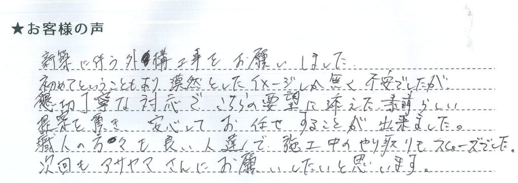 この度は、アサヤマに工事の依頼をしていただきありがとうございました。
