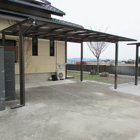 既存のカーポートを撤去し、新しく2台用のカーポートを2棟設置致しました。一緒にこれまであった植栽を撤去し境界工事をご依頼いただきました。完成後は、お庭のお手入れも少なくなりましたね。