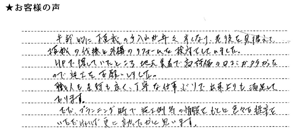 この度は外構リフォーム工事をご依頼頂きまして誠にありがとうございました。