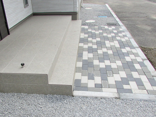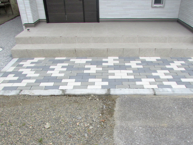 また、玄関前の処理については、インターロッキングのご提案を致しました。