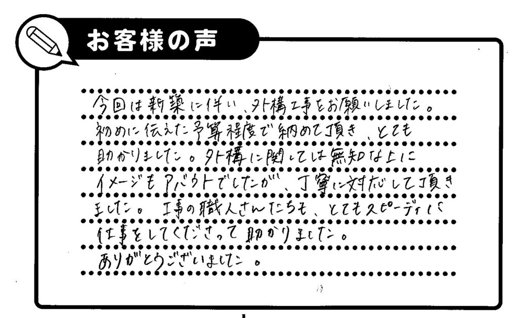 工事前に仕上がりのイメージをお伝えし、追加工事の必要性も伝え、ご納得していただき満足いただけまして、大変嬉しく思います。