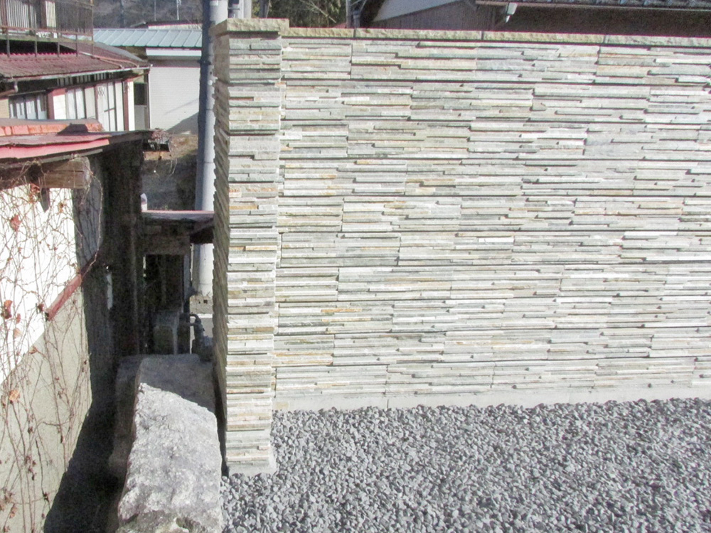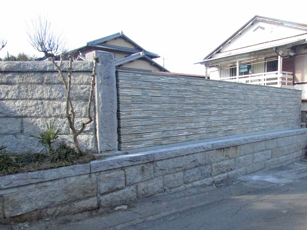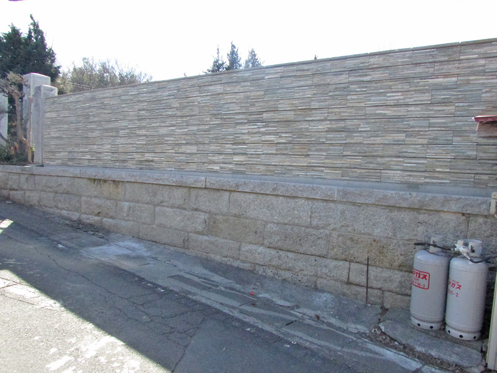 天然石のブロック等を使用した色合いを合わせ既存の塀も汚れを落としてバランスを取る方法を相談しながら決めさせていただきました。