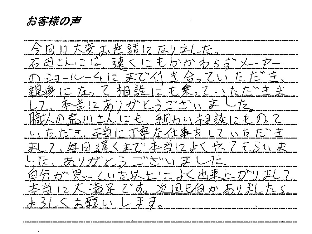 A様とメーカーのショールームへ伺い実物をみて商品をお選びいただきました。