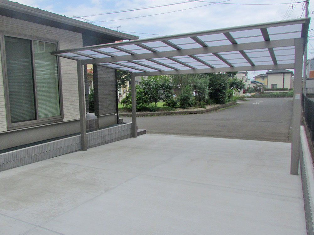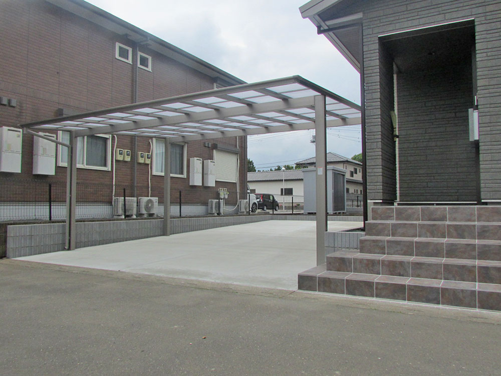 カーポートは2台分と物置、玄関の階段を追加で施工致しました。