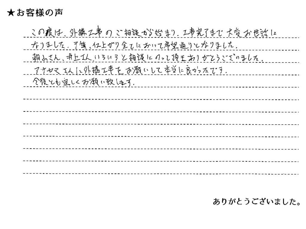 また、完成後は嬉しいコメントを頂きありがとうございました。
