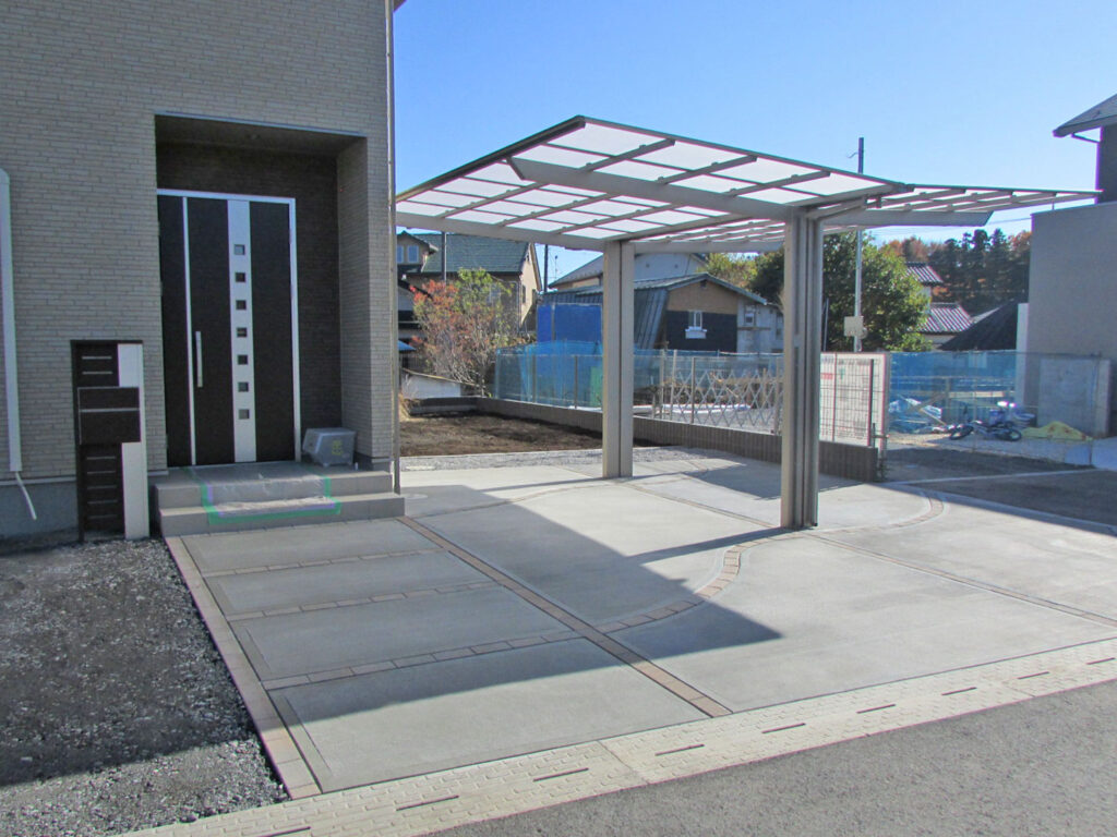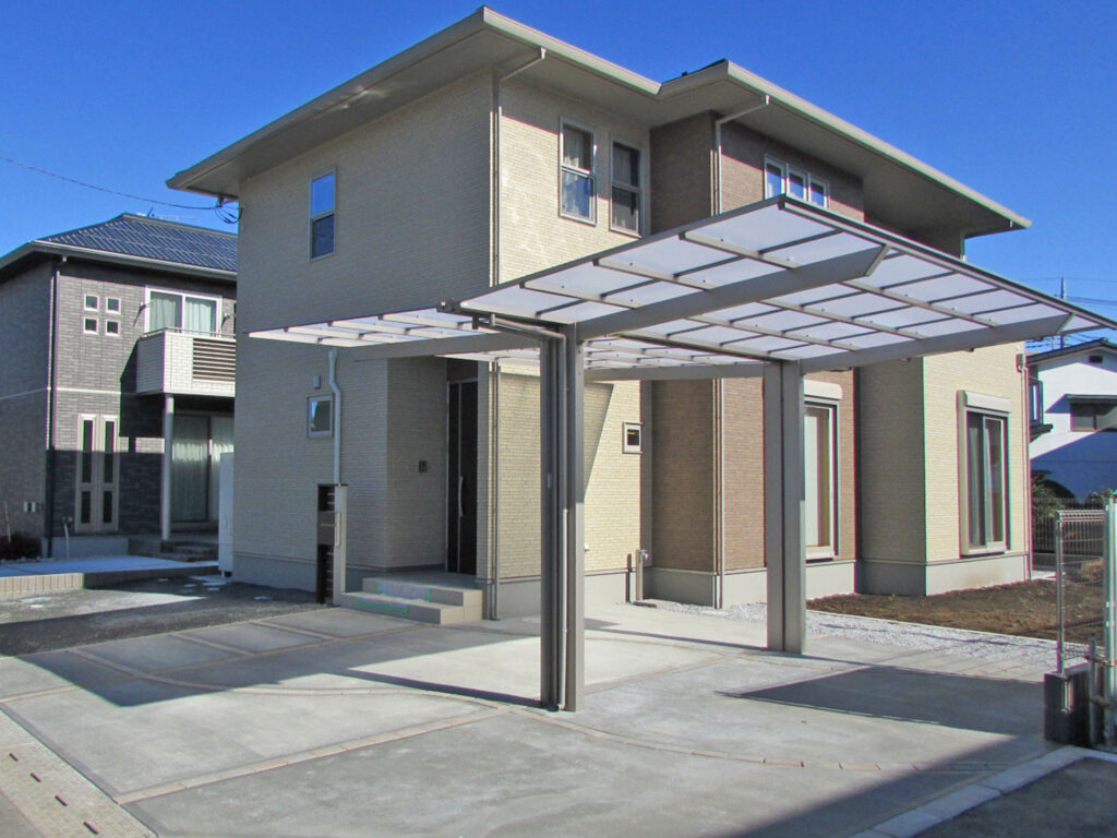 カーポートは敷地と建物の位置を考慮し、出入りのしやすいY合掌のカーポートを施工しました。