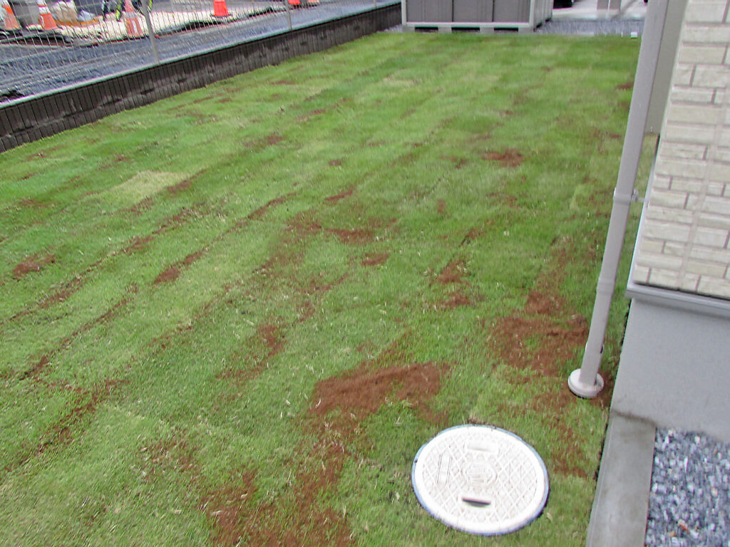 駐車スペースの後ろには後に物置を設置できるスペースを確保しお庭を施工しました。