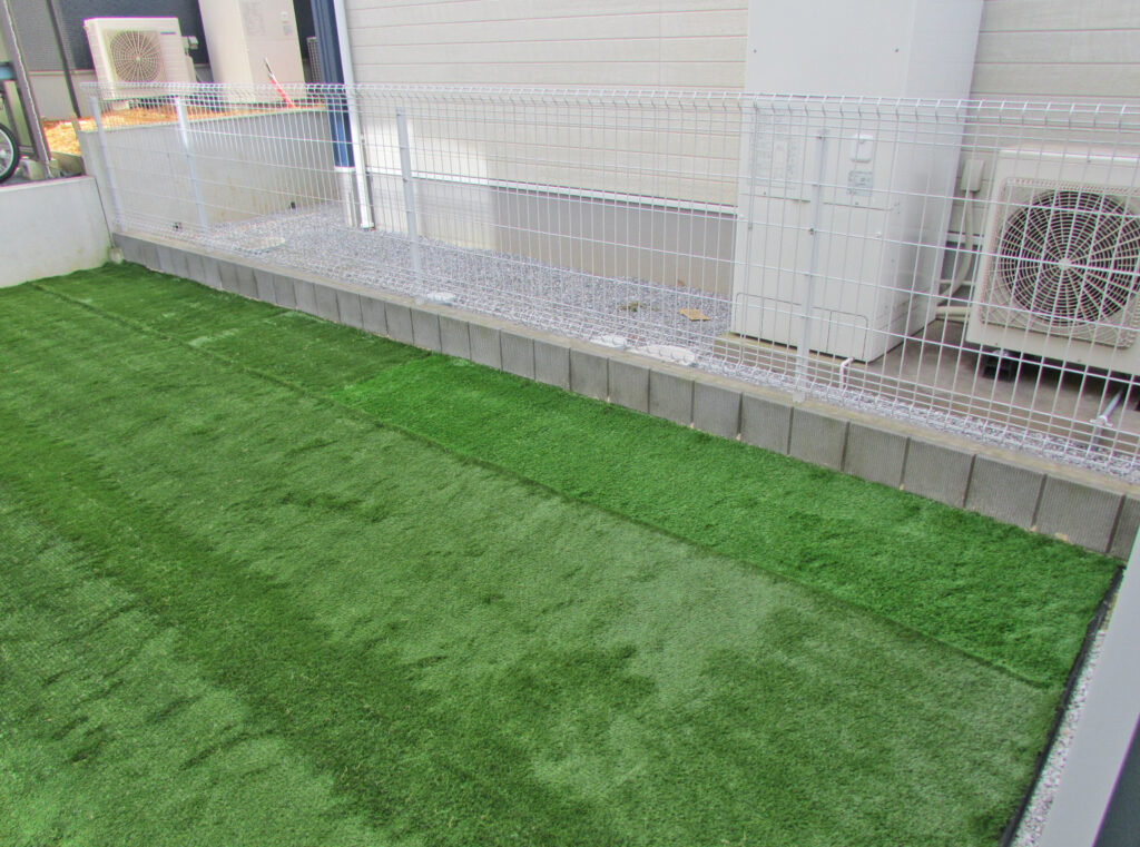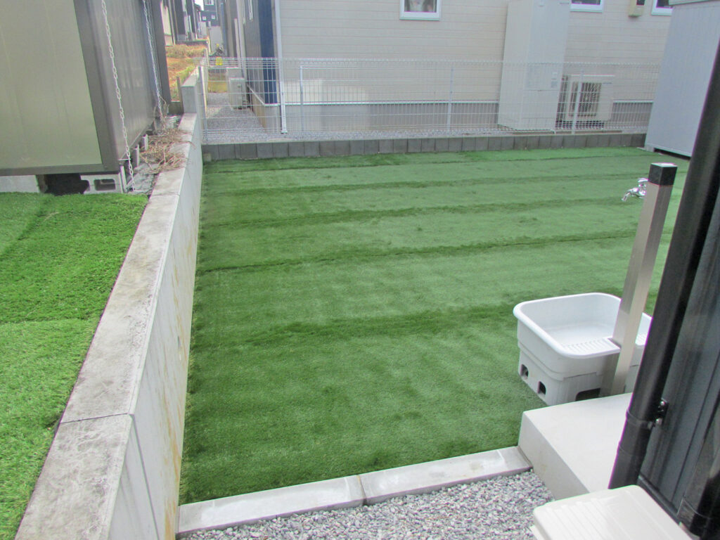 お庭には人工芝を採用して頂きましたので雑草などのお手入れは楽になるくと思います。