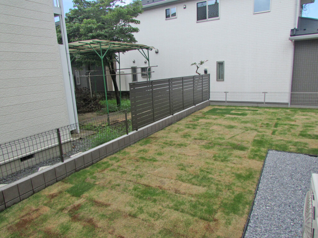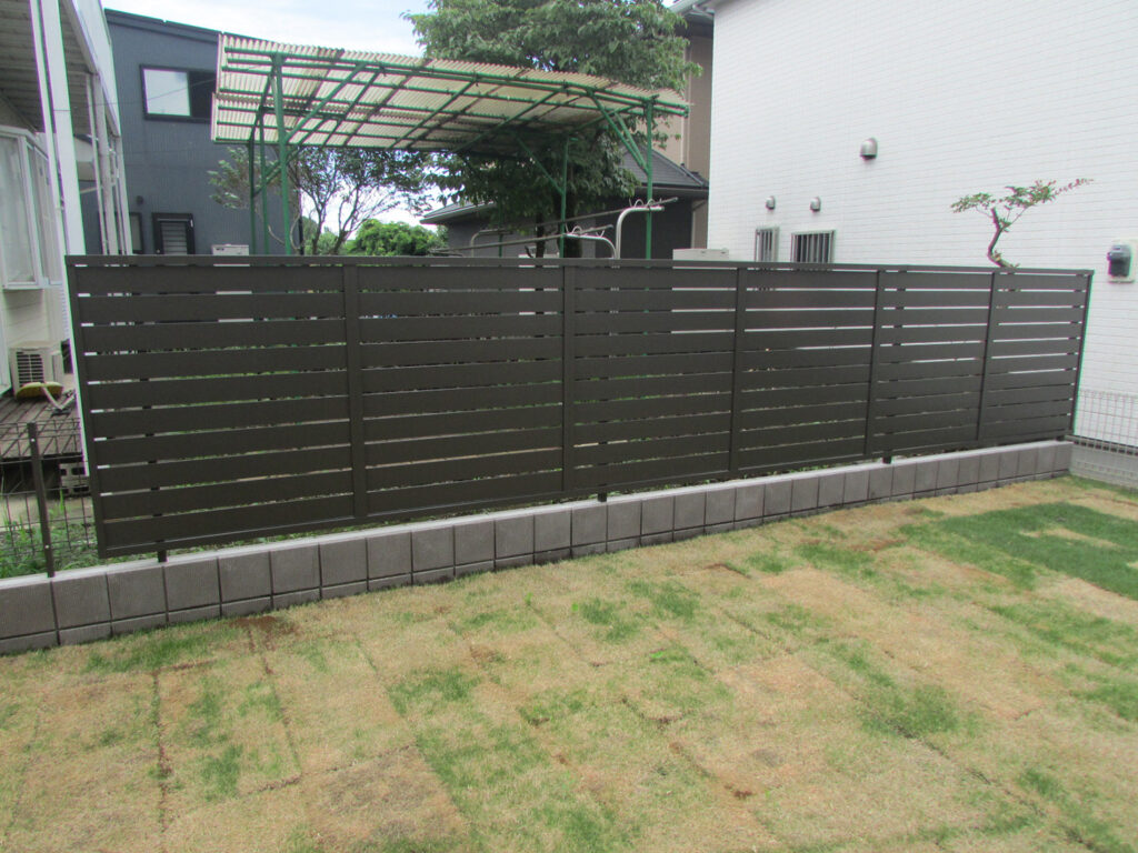 お隣からの目線を遮るように境界には一部目隠しフェンスを施工いたしました。