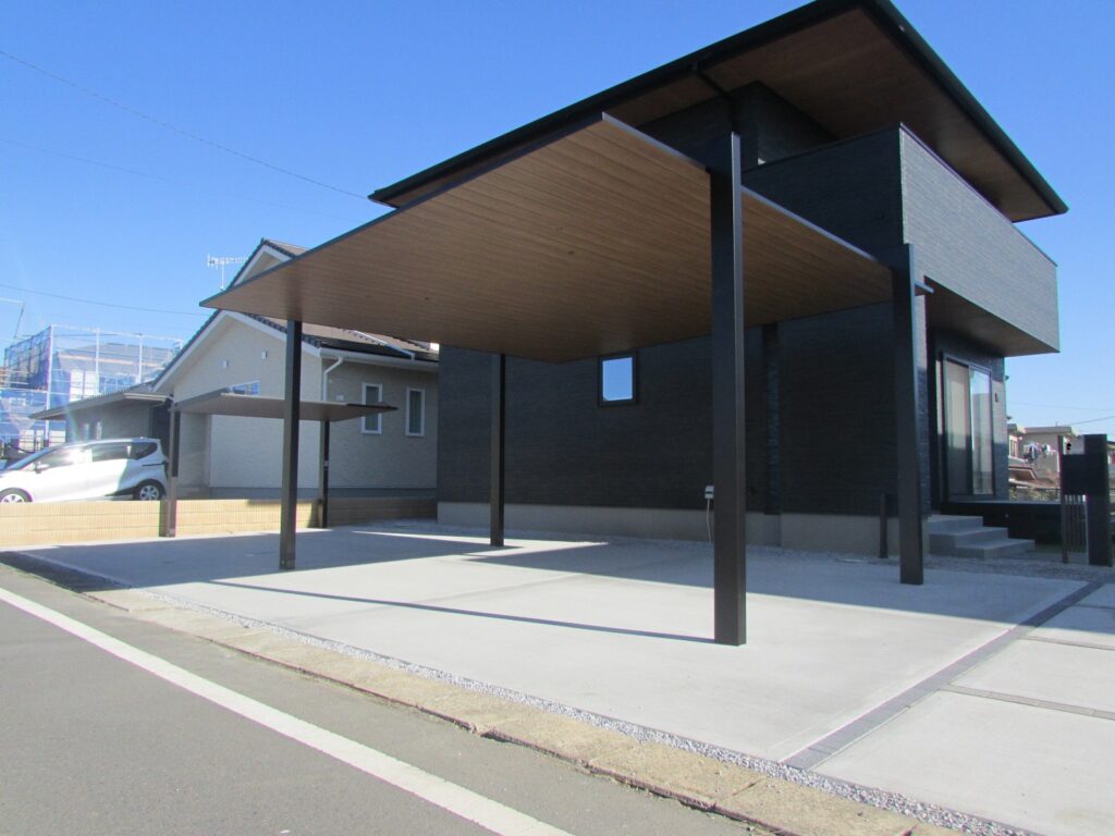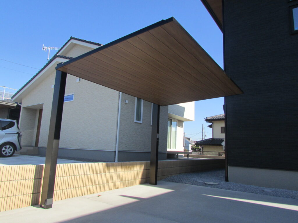 建物の色に合わせたカーポートSCが印象的な外構になりました。