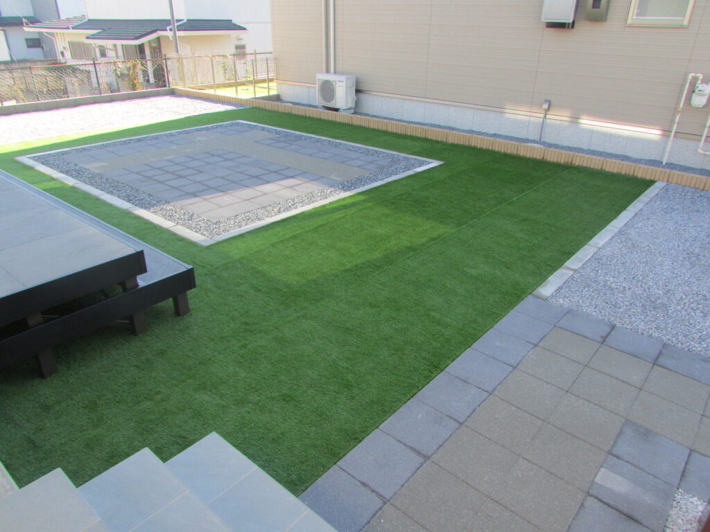 お庭のタイルデッキも階段をつけているので、出入りにとても便利になりました。