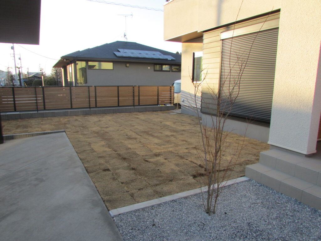 暖かくなり芝やシンボルツリーが青々とするとさらに雰囲気も良くなります。