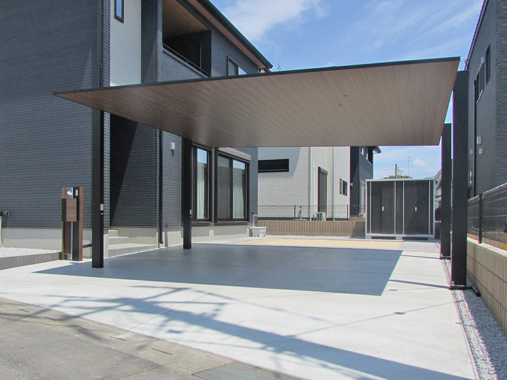 カーポートSCや門柱の色合いを建物に合わせました。