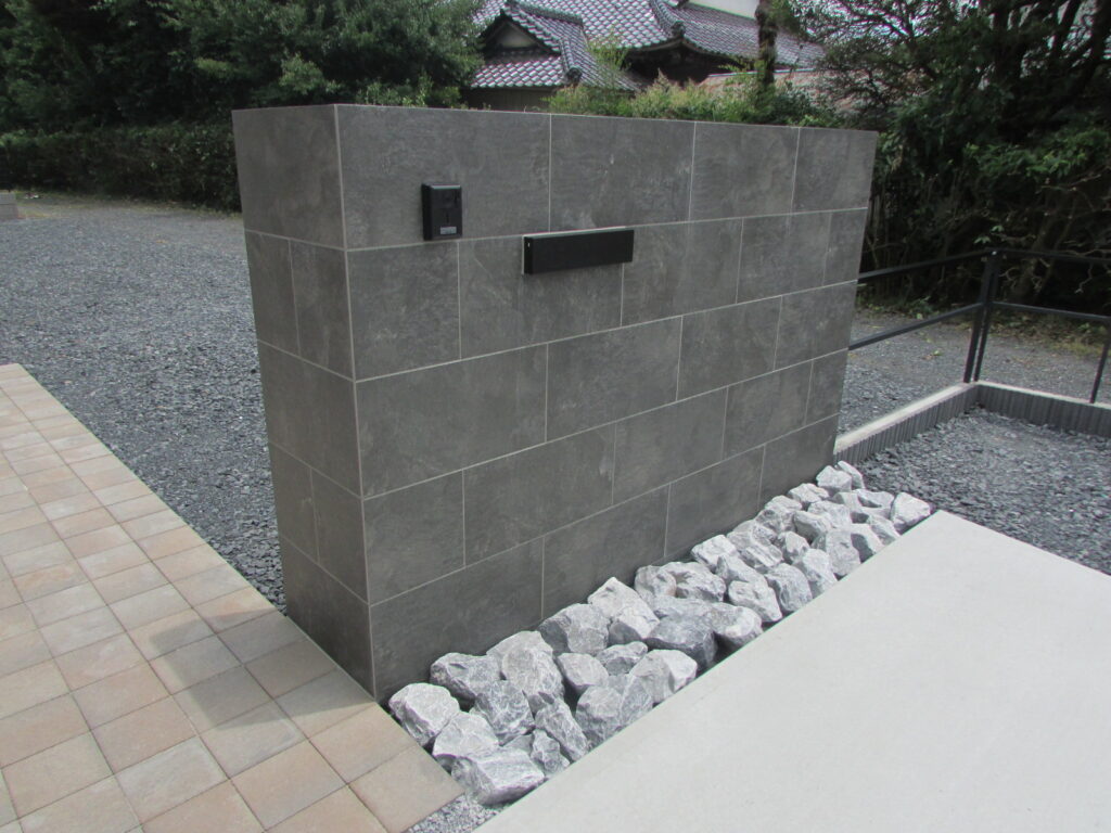 門柱も重厚感が出るように検討し、位置も目隠しも兼ねた配置にしました。