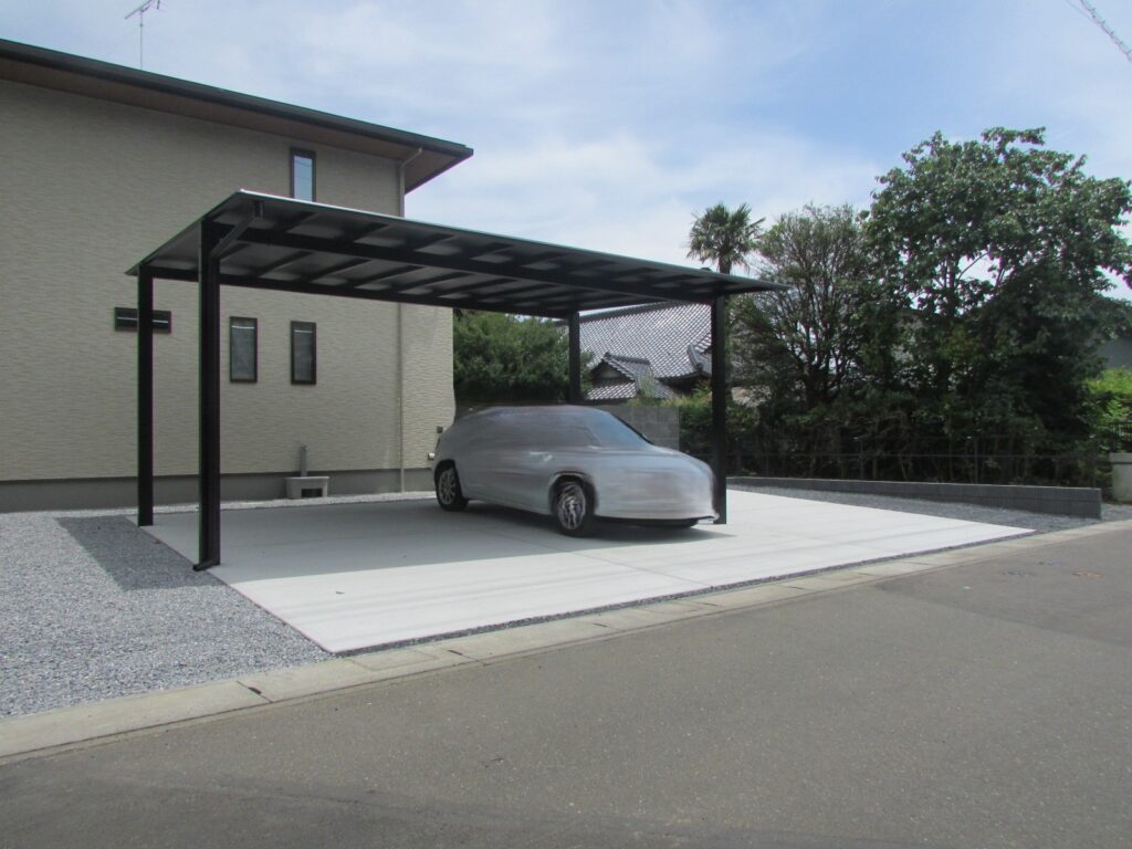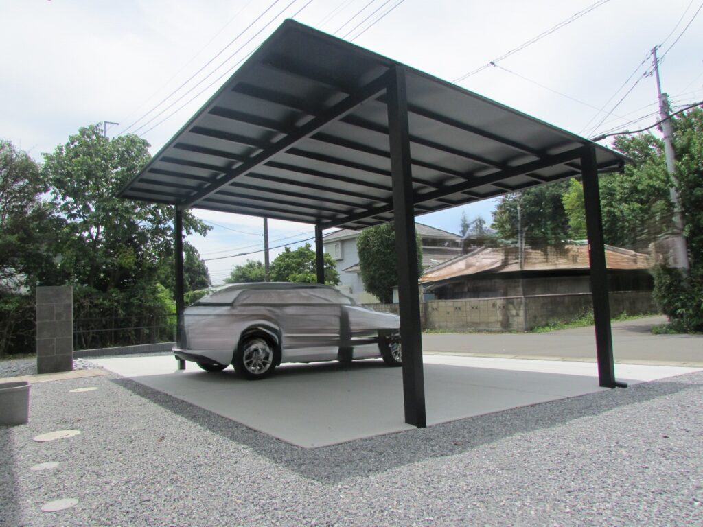 カーポートの色は屋根もブラックなので日差しをカットできます。