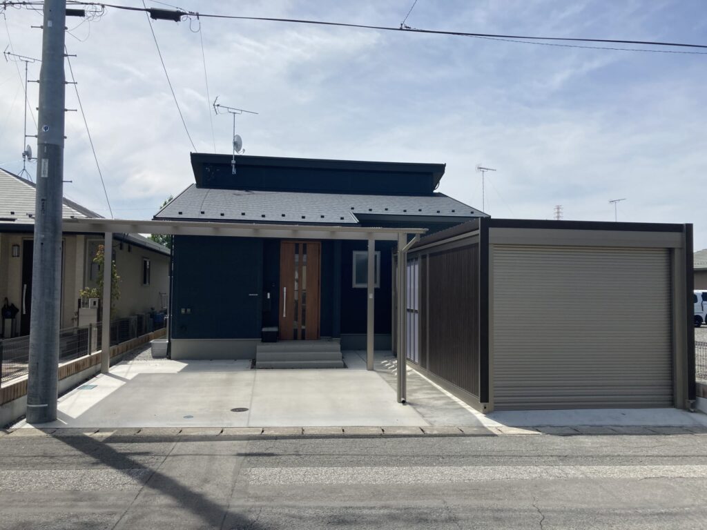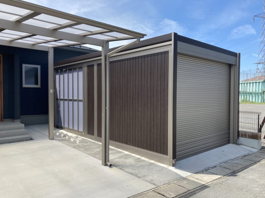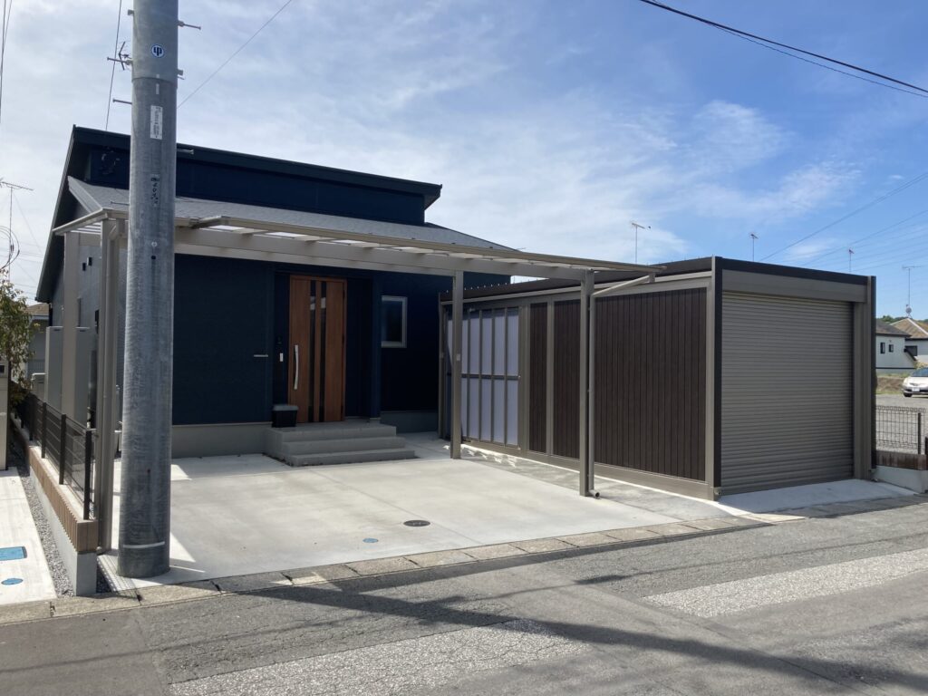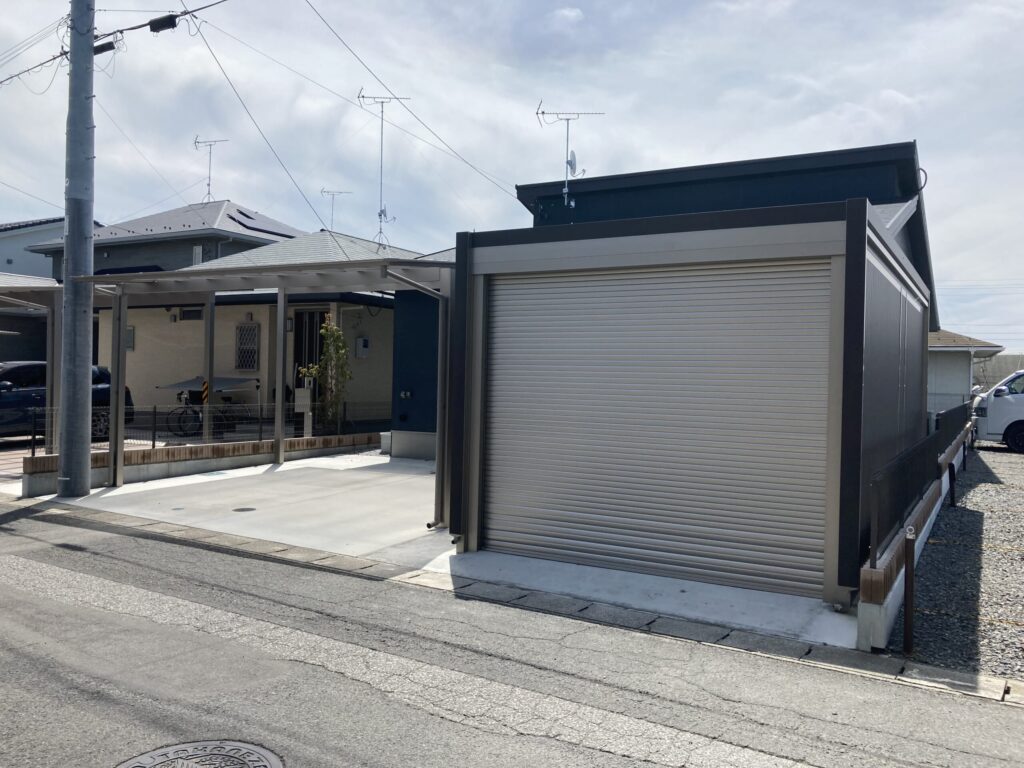 ご夫婦で大型バイクが趣味です。ガレージの中で整備が出来るようにと車用のガレージを設置しました。ガレージも一味違った「LIXIL スタイルコート}です。ハーレーにあったデザインの良いデザインです。お車もカーポートを設置させていただきました。