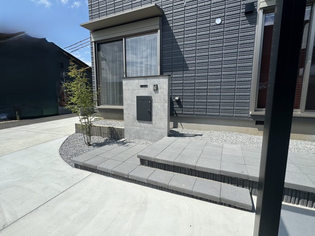 全体的に色合いもまとまっており素敵な外構になりました。